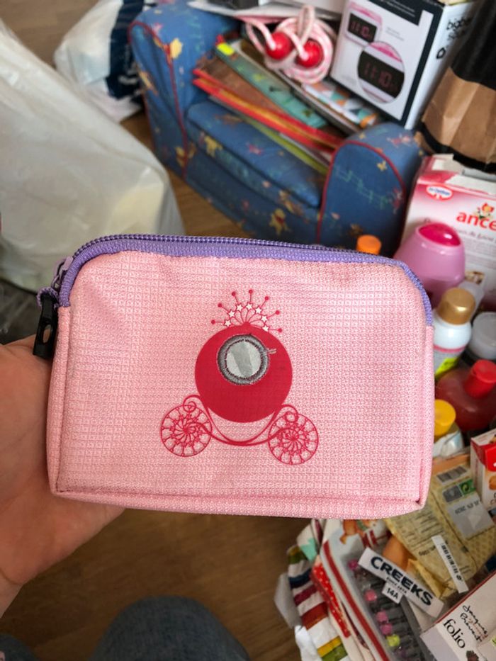 Porte monnaie rose et lilas à motifs.