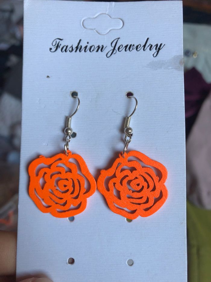 Boucles d’oreilles fleurs oranges en bois. - photo numéro 3