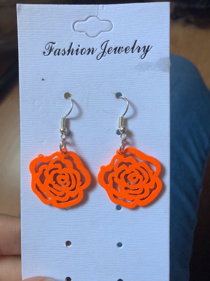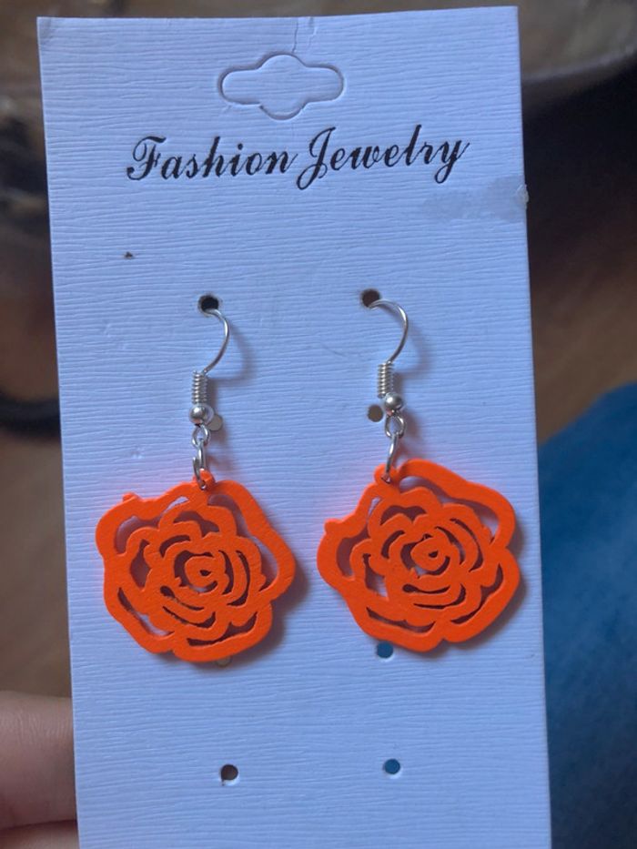 Boucles d’oreilles fleurs oranges en bois. - photo numéro 1