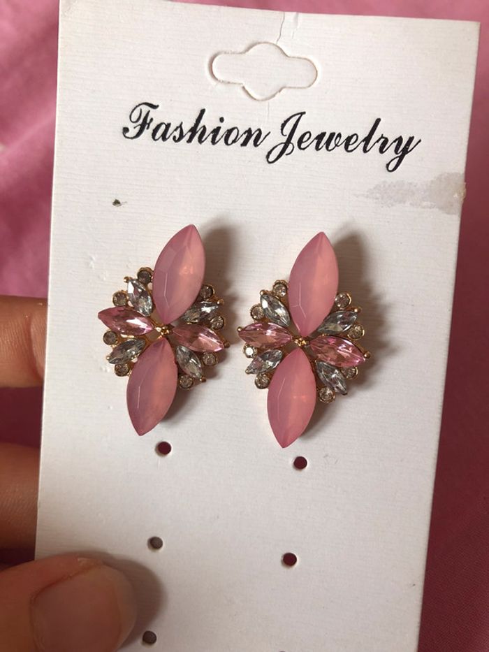 Très jolies boucles d’oreilles roses et argenté.