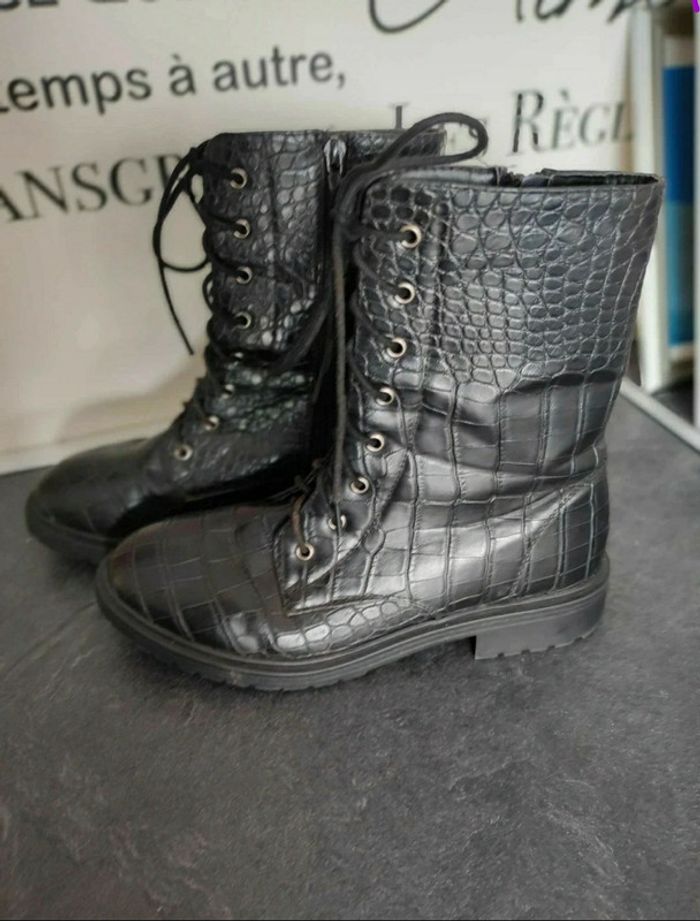Bottines justfab #mov59Shoes #rangers #effetanimal #boots #motard #tendance #rock