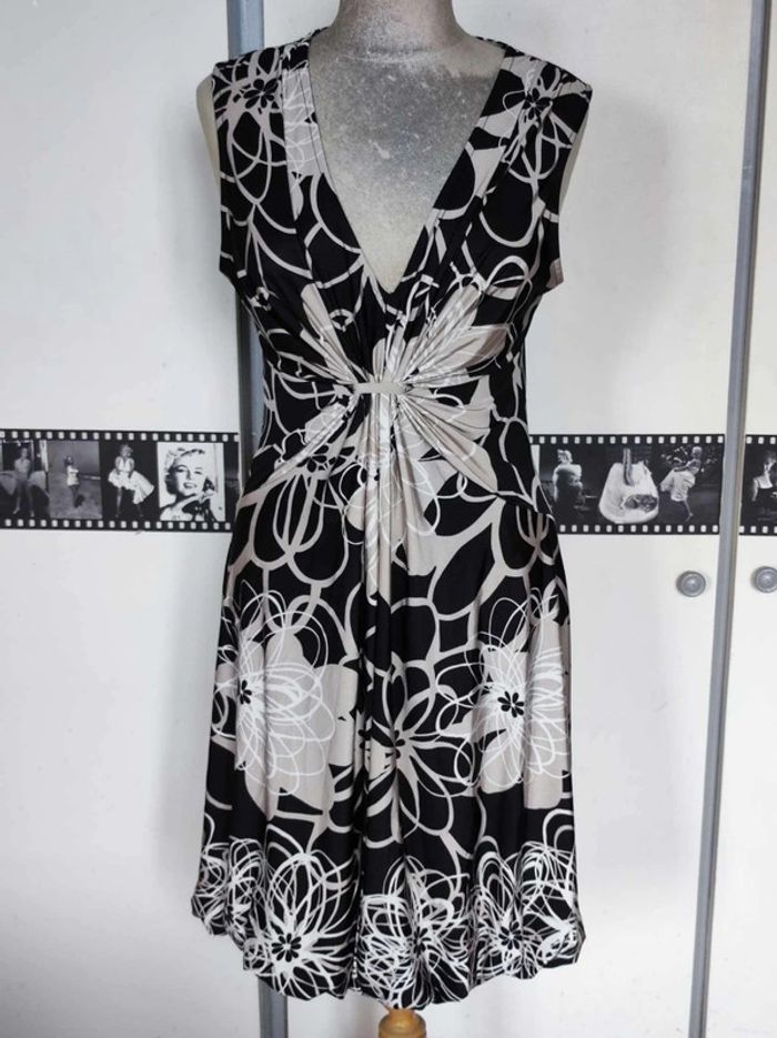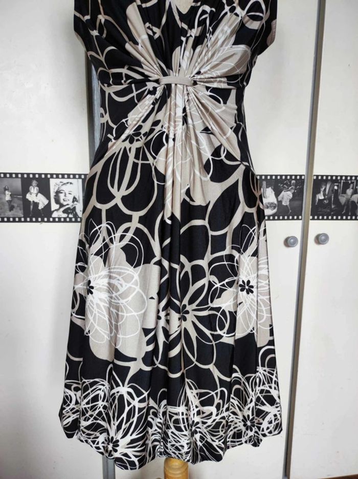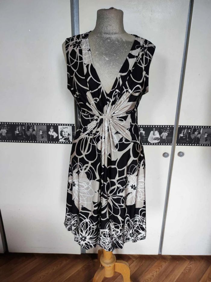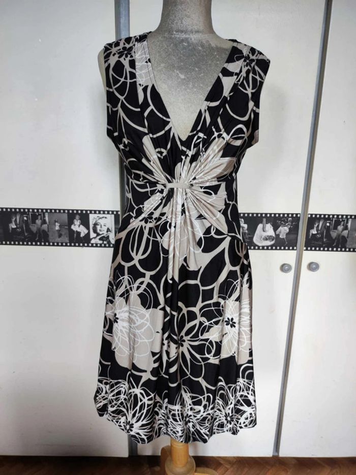 Robe fluide, très bon état, matière agréable. Taille 3, je dirai taille 42. N'hésitez pas si vous avez besoin de mesures avant de commander. #mov59Femme #été #extensible #blanc #fleurs
