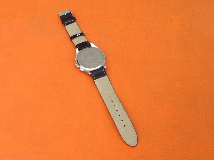 (pour cette montre nous offrons une seconde pile). Montre Homme (Quartz) Atlas for Men Watch Cadran rond Boitier : 40mm Bracelet semelle cuir noir Largeur : 20mm Longueur totale : 240mm Poids : 36grs