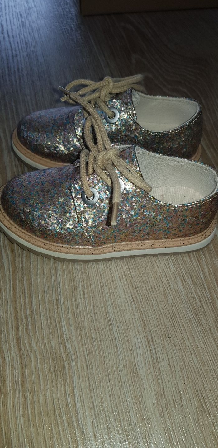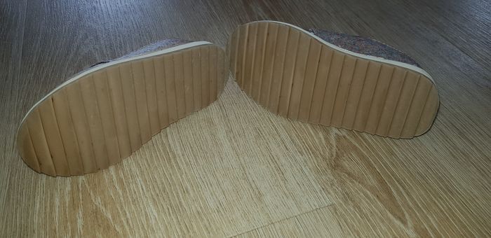 Très jolie chaussure à paillettes, les paillettes sont sous une couche de vernis donc ne se décolle pas. Chaussure porté en intérieur 2 ou 3 fois. Taille 22 (taille grand)