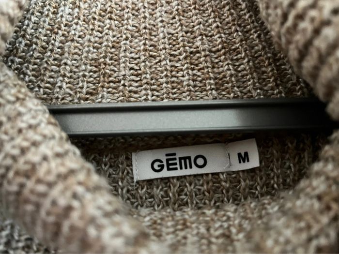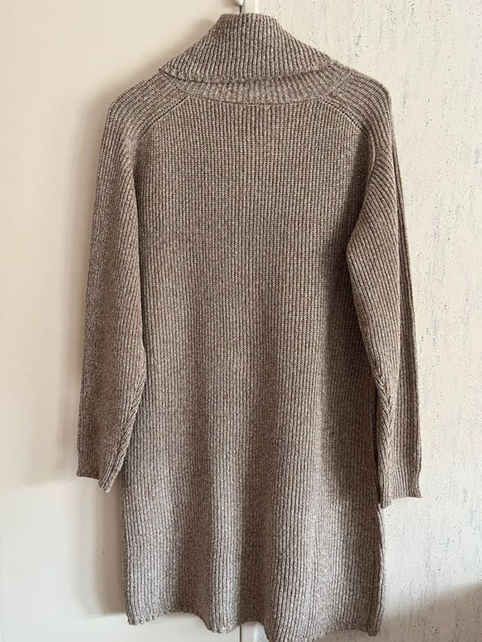 Col boule. Manches longues. Coupe droite assez près du corps. A enfiler. Matière très douce et agréable. Largeur d'aisselle à aisselle 52 cms, longueur 85