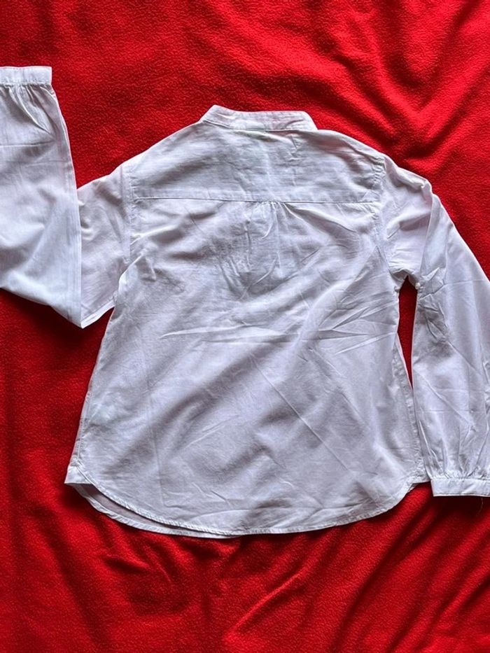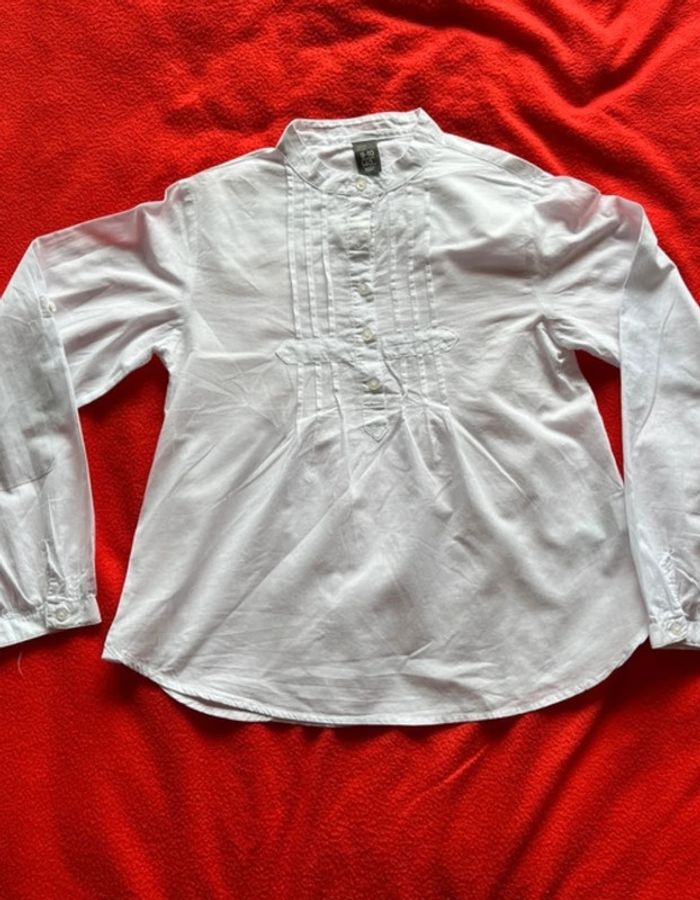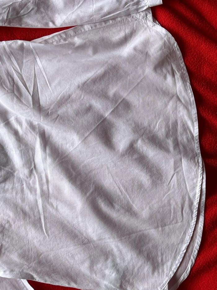 Tunique manches retroussables. Patte de boutonnage devant. Base arrondie. Devant et dos unis. Coupe évasée. Matière légère et fluide. Composition 100% coton.