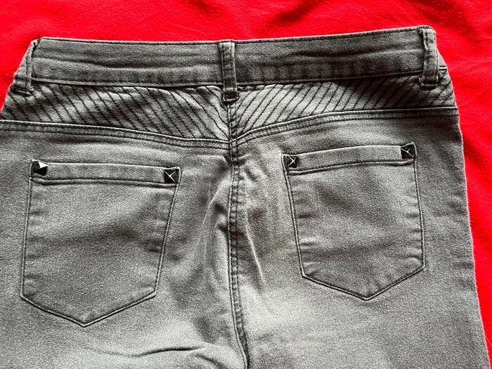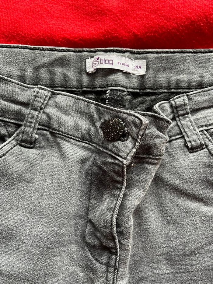 Coupe slim. Poches devant et à l’arrière. Fermeture par zip et bouton. Ajustable à la taille par élastique. Composition 74% coton, 24% polyester et 2% élasthanne. Très légères imperfections à l’entrejambe (voir photo). Mesure entrejambe 76 cms.