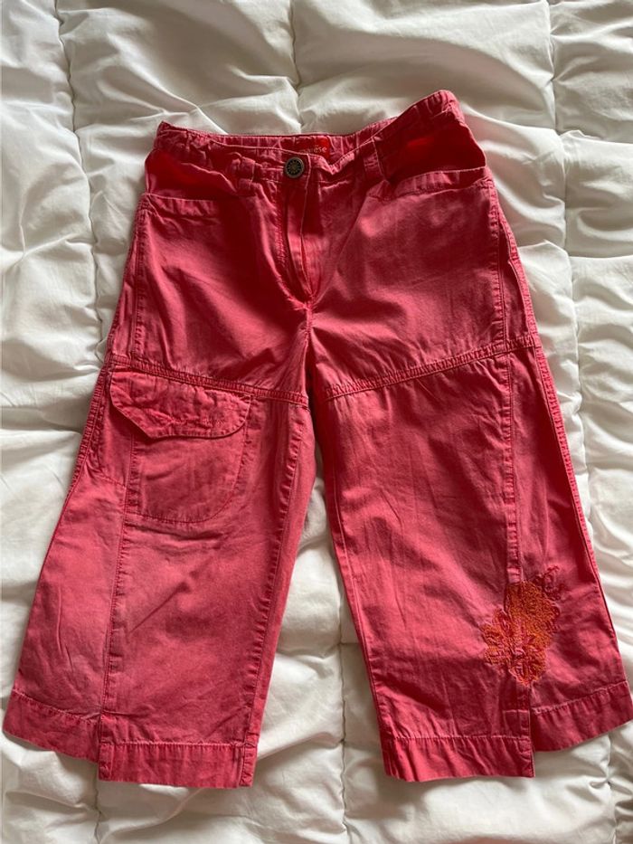 Fermeture par bouton et zip. Ajustable par élastique à la taille. Poches devant et à l'arrière. Coupe large. Composition 100% coton.