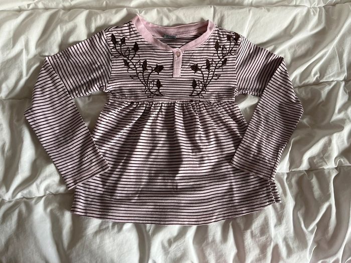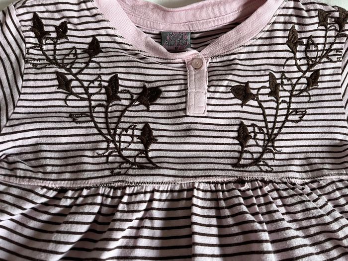 Manches longues. Fermeture par bouton devant. Col rond. Broderies devant. Coupe évasée. Composition 100% coton.