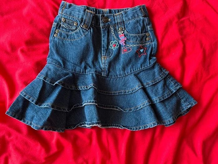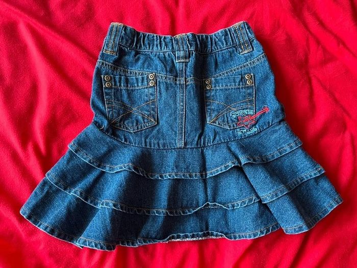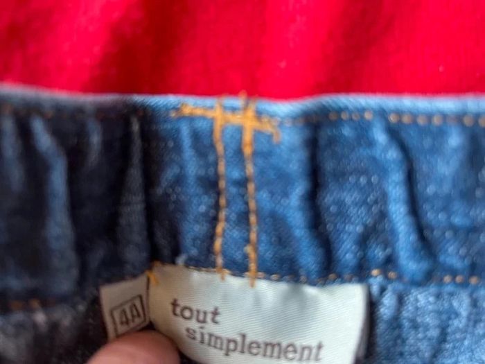 Base volantée. Non doublée. Fermeture par zip et boutons. Taille élastique au dos. Poches devant et à l’arrière. Passant pour ceinture. Composition 100% coton. Pas de défaut.