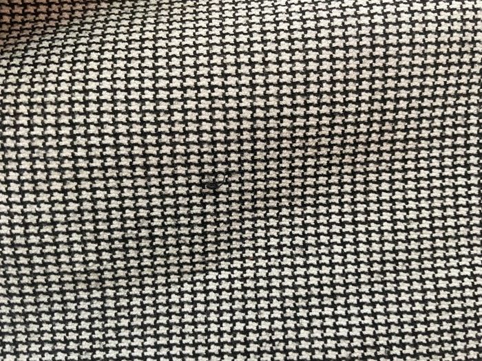 Une fois porté, il arrive en dessous du nombril (je sais 1m58). Il est encore en très bon état. Il y a deux, trois (voir les photos) accros qui ne se voient plus lorsqu’il est porté.