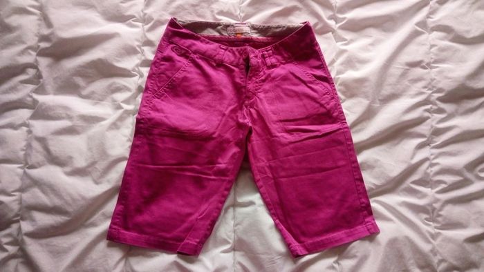Coupe droite. Larges poches devant. Poches à l'arrière. Fermeture par bouton et zip. Passants pour ceinture. Composition 97% coton et 3% élasthanne. Mesures : longueur = 46 cm. Tour de taille 66 cm.