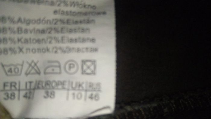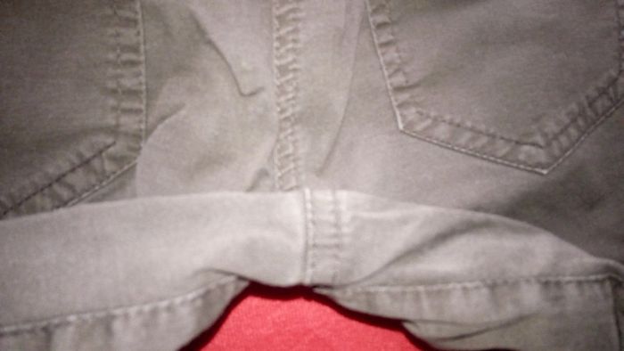 Pantalon coupe droite. Poches devant et à l'arrière. Passant pour ceinture. Fermeture par zip et 1 bouton. Coupe droite. Composition 98% coton et 2% élasthanne. Mesures : taille 74 cm. Longueur entrejambe 51 cm.