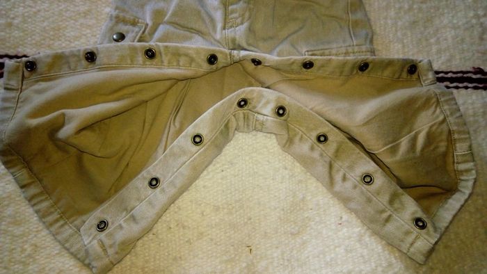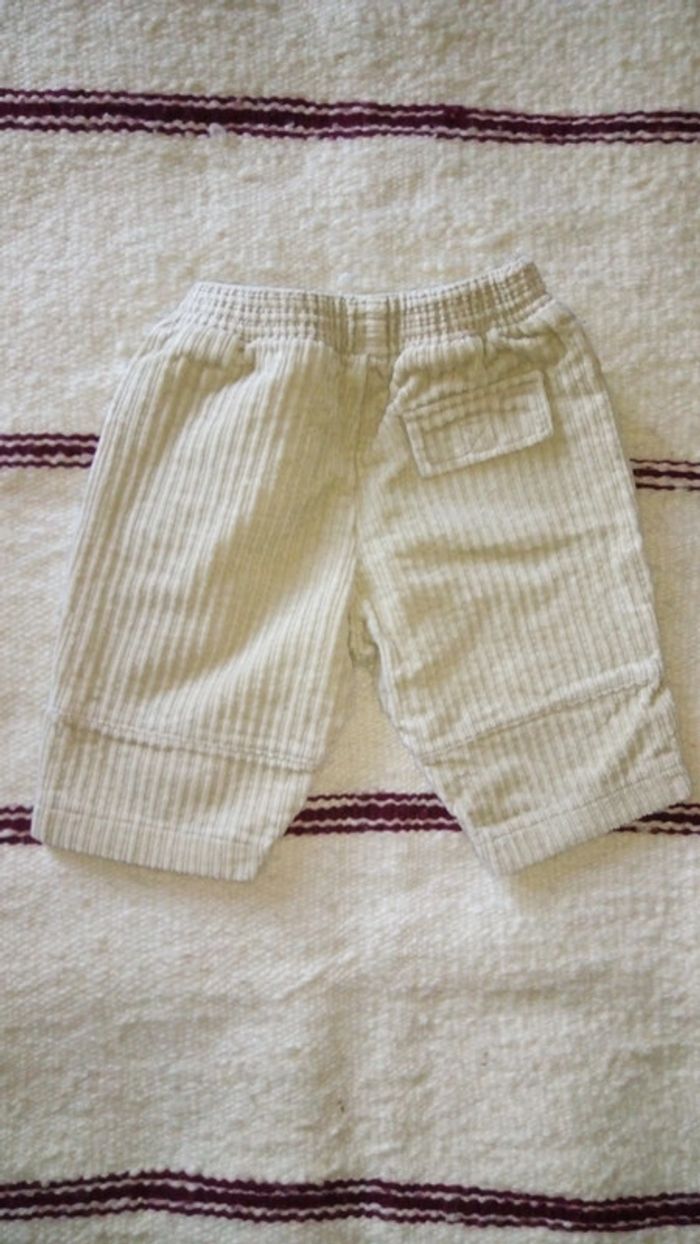 Pantalon kaki en velours côtelé. Entièrement doublé. Poches latérales. Taille élastique. Composition 100% coton. Pantalon beige en velours côtelé. Non doublé. Poches plaquées. Taille élastique. Composition 100% coton. Pantalon beige uni. Poches devant et latérales. Taille élastique à l'arrière et sur les côtés. Poches plaquées devant et latérales. Fermeture par bouton pression. Entrejambe à boutons pressions.
