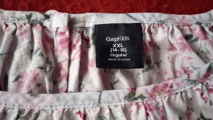 Jolie tunique fleurie GAP manches courtes. Matière fluide. Bouton au dos. Col rond. Composition 100% coton. Porté 2 fois.