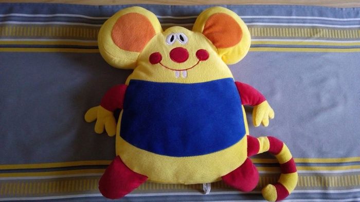Grande souris multi couleur. Toucher très doux. Hauteur 42 cm
