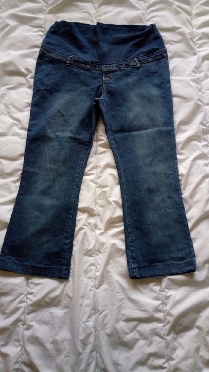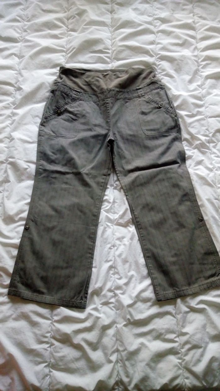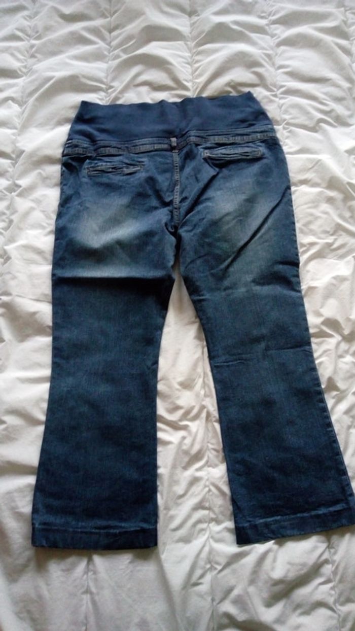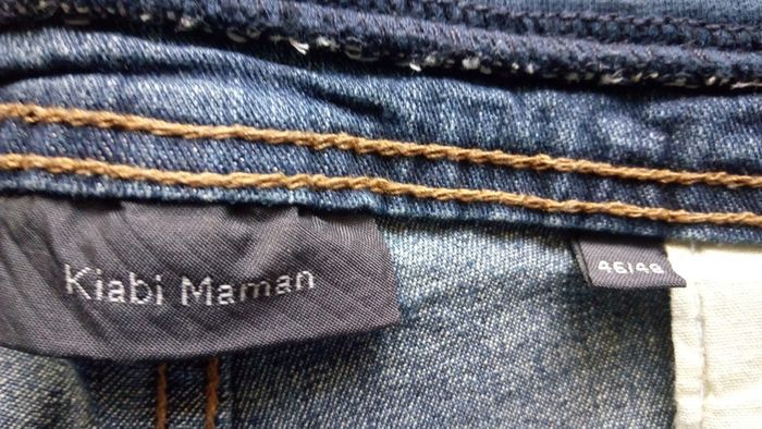 Lot de 2 jeans de grossesse. Bandeau élastique pour le ventre. Jean bleu : poches plaquées au dos. Ni boutons, ni zip devant. Entrejambe 68 cm. Pour le jean kaki : poches devant et au dos. Ni zip ni patte de boutonnage devant. Boutons décoratifs poches et jambes. Jean 100% coton, ventre 95% coton et 5% élasthanne. Entrejambe 68 cm.