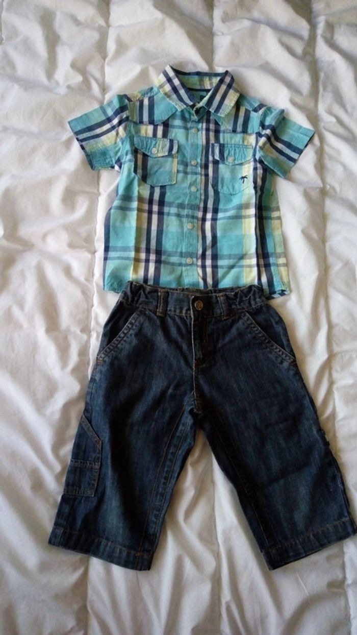Ensemble pantacourt jean et chemise