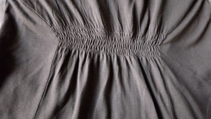 Manches longues froncées à la base. Coupe évasée. Larges poches latérales. Fronces au dos. Composition 100% viscose. Longueur 72 cm. Aucun défaut. Porté 2 fois.