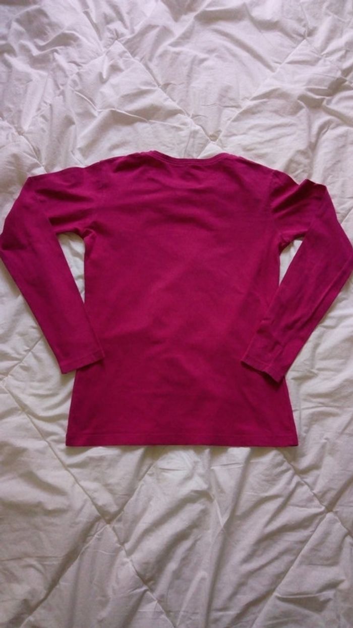Imprimé devant. Dos uni. Col rond. Pinces devant. Défaut : le flocage noeud papillon est légèrement étiré.