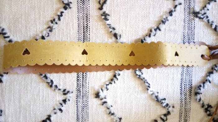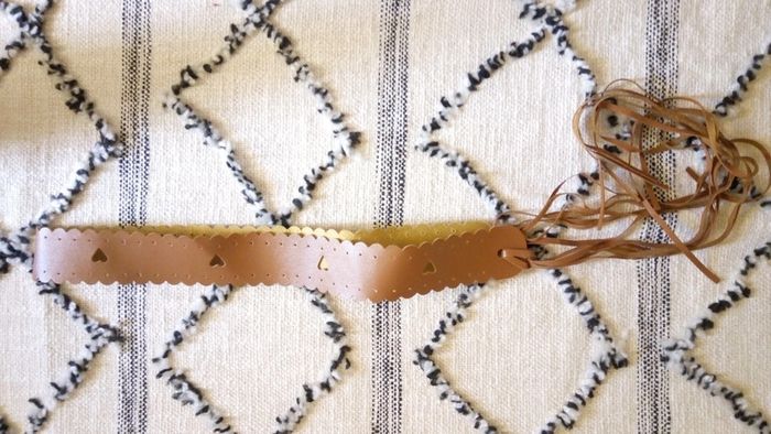 Ceinture à franges. Motif coeur. Composition 100% synthétique. Longueur 65 cm. Aucun défaut, jamais portée.