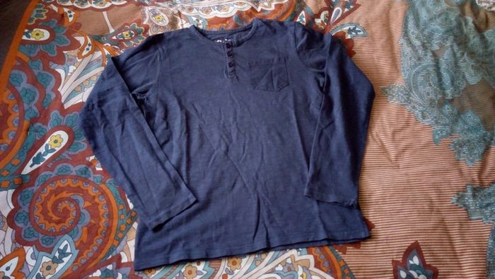 T-shirt gris manches longues. Matière légère. Patte de boutonnage sur le devant. Poche poitrine. Dos uni. Matière 100% coton. Le même existe en gris dans mon dressing.