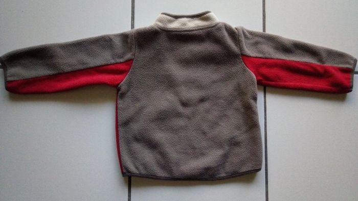 Pull polaire. Col légèrement montant et zippé. Motif flocons de neige devant. Dos uni couleur marron. Base légèrement arrondie. Empiècement dragon des neiges devant. Manches légèrement resserées.