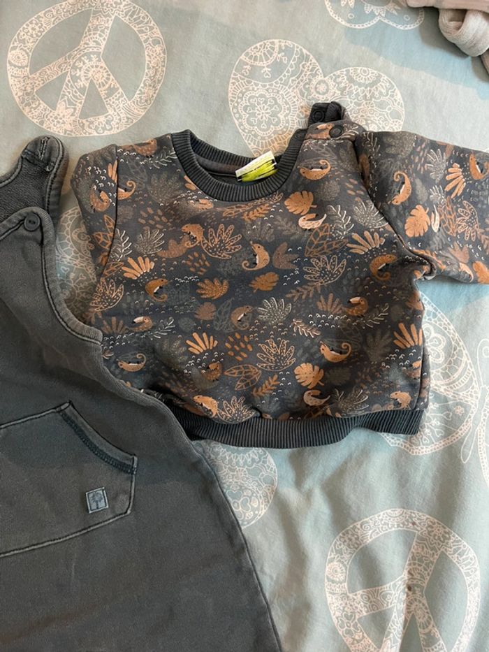 Ensemble salopette + sweat 3 mois vert - photo numéro 1