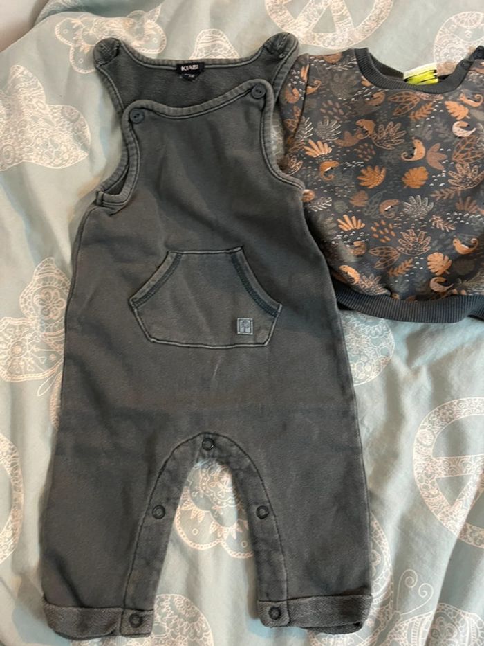 Ensemble salopette + sweat 3 mois vert - photo numéro 2