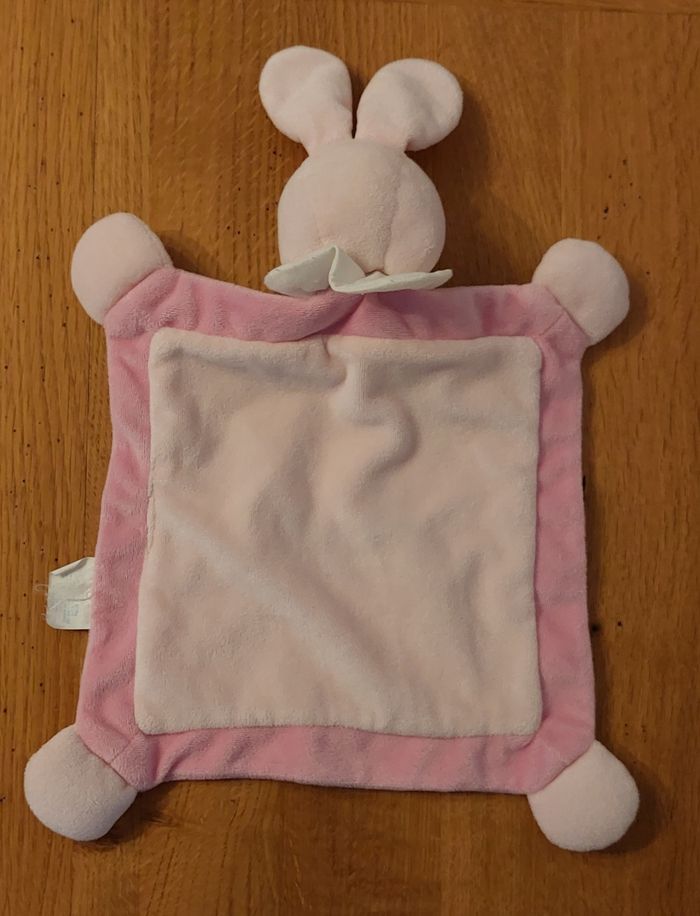 Doudou plat Lapin Picot 2 tons de rose Bon état
