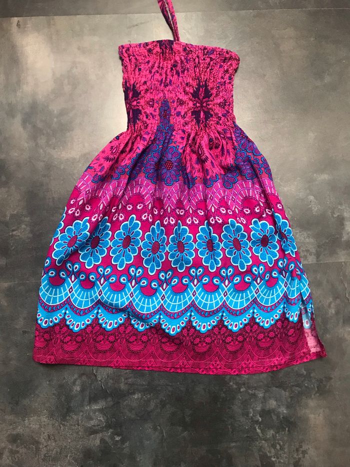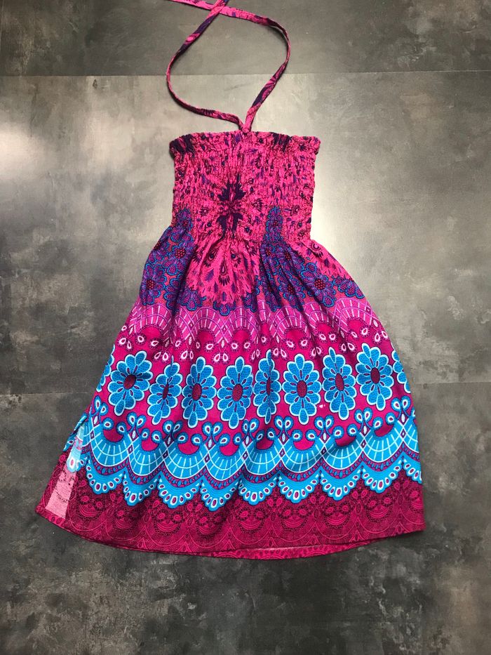 Robe indienne, tons fuchsia et bleu bande smocks élastique niveau poitrine Peut convenir dès 2 ans en robe longue Sinon après en plus court pour 3/4 ans
