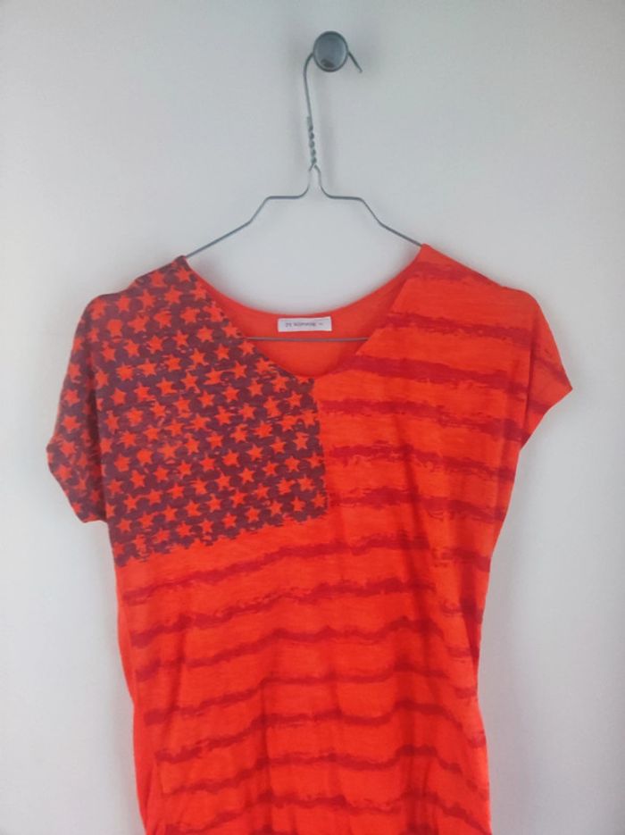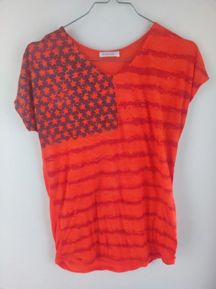 Tee shirt femme taille S ou fille 14 ans Très bon état Orange avec drapeau américain #femmetaillesvk59890 #fillle14ansvk59890