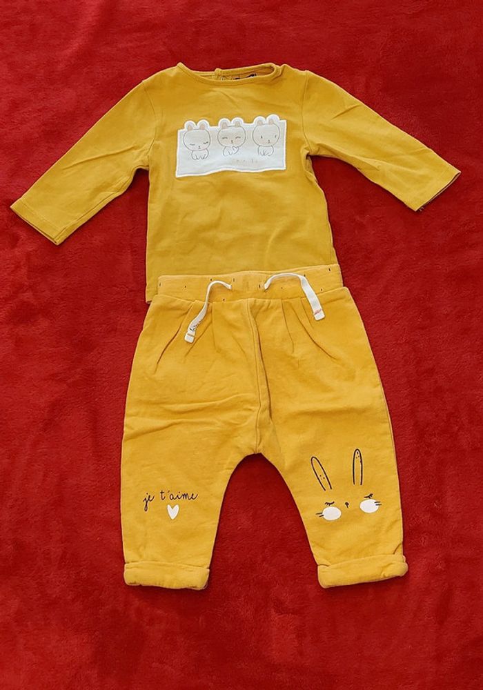 Ensemble comprenant pantalon et t shirt manche longue Très bon état Taille 6 mois Marque kiabi