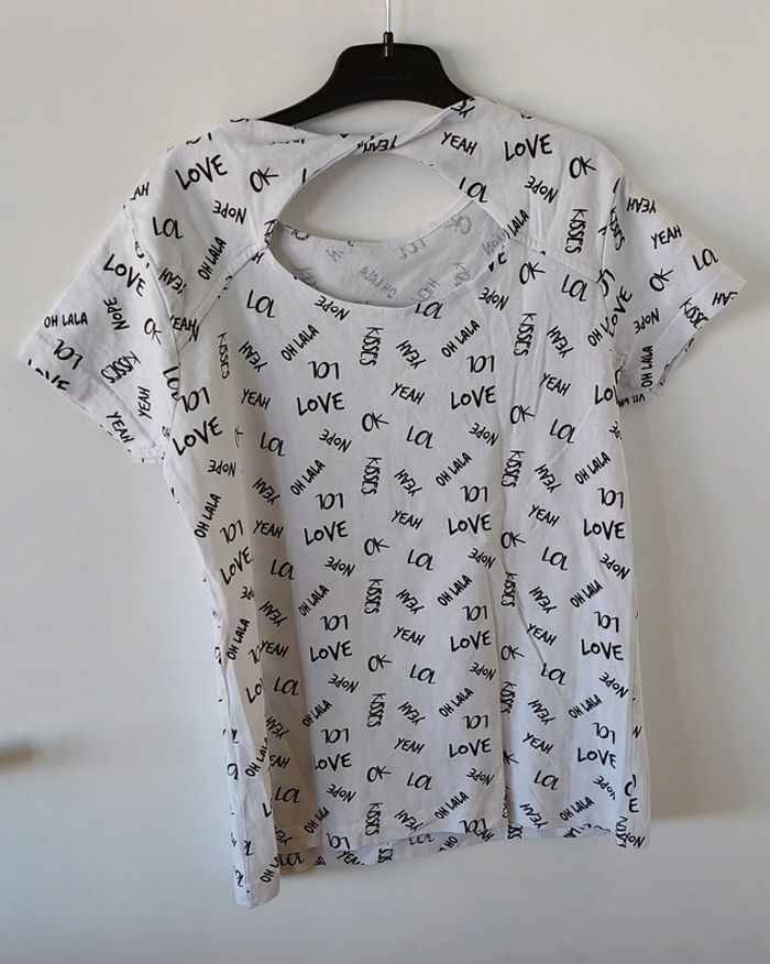 T shirt blanc et noir Jolie détail dans le dos Très bon état Taille 12 ans Marque sans marque