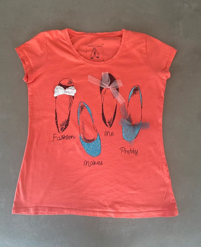 T shirt de couleur corail Peu porté Très bon état et sans défauts Taille L Étiquette coupée Cache cache