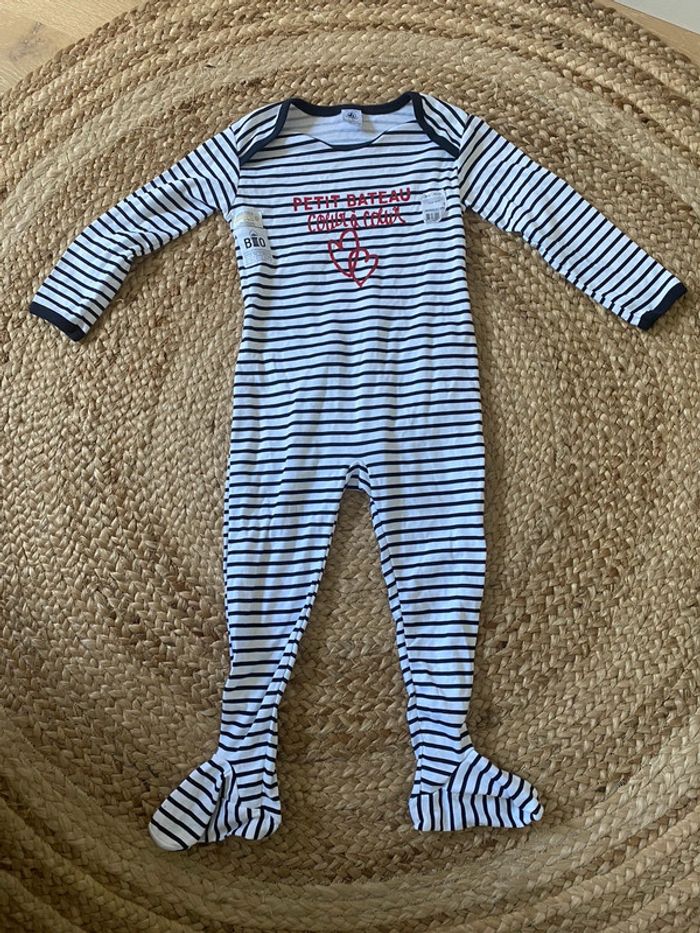 Joli pyjamas léger style marinière avec pieds 36 mois Neuf avec étiquettes