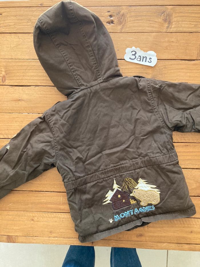 Manteau hiver garçon 3 ans 94 cm 3 suisses Capuche Doublure chaude en moumoute Bon état : un peu décoloré #kryptana_troisans