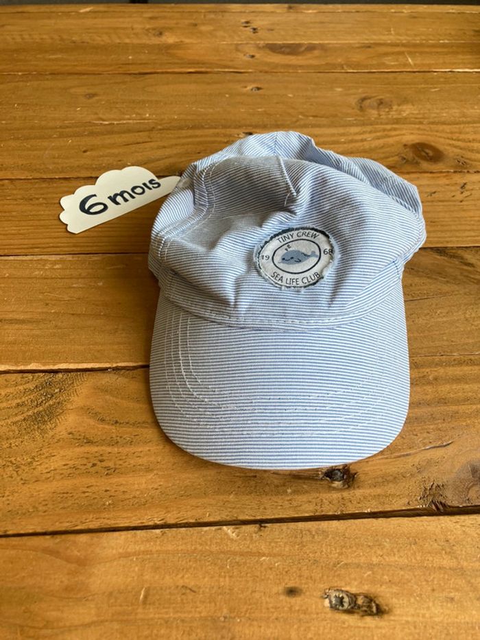 Casquette rayée Bleue et macaron motif baleine 6-9 mois / 74 H&M Excellent état : pas de tâche ni trou #kryptana_sixmois