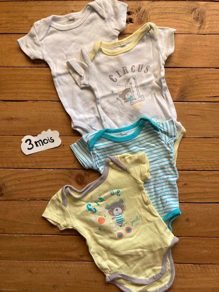 4 bodys bodies In extenso 3 mois / 62 cm manches courtes été erreur de couleur sur la photo ; la couleur du body circus est celle de la première photo très bon état, pas de tâche #kryptana_troismois (vous pouvez cliquer ici pour voir mes articles dans cette taille). Pour vous y retrouver dans mon dressing, tout est classé par # en sommaire dans la présentation de mon profil Nombreuses marques en vente et souvent en très bon état : sergent marjor, du pareil au même, petit bateau, orchestra, catimini…