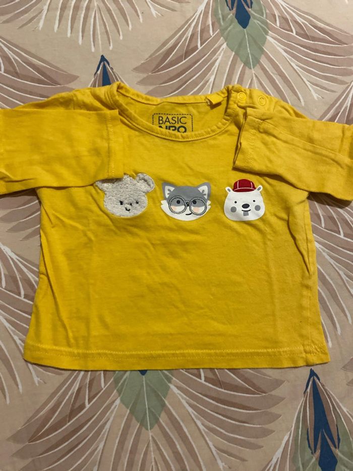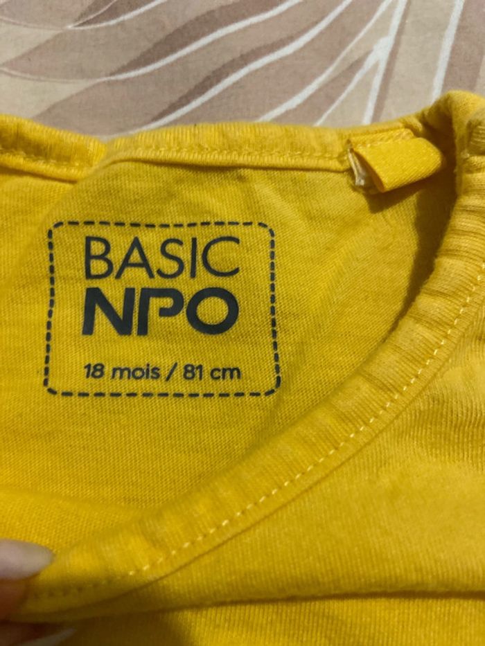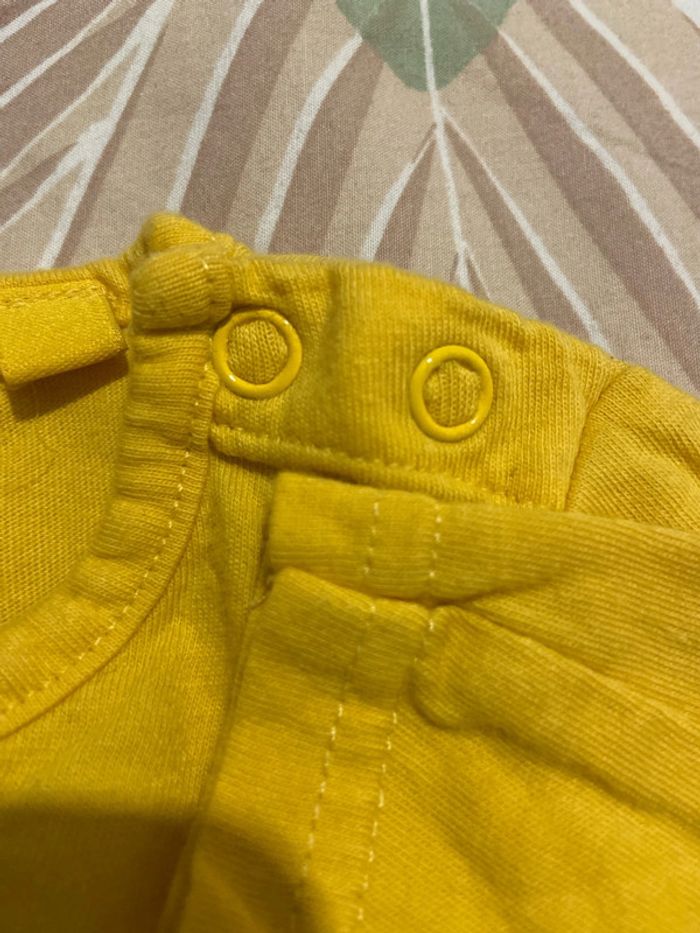 Le jaune est moins vif que sur les photos , plutôt jaune poussin Il taille petit correspond plutôt à un 12/18 mois