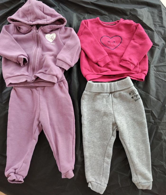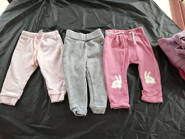 2 ensemble jogging 6-12 mois de chez lupilu mais convient plutôt à 18 mois. J'ai mis une photo de 2 autres jogging le rose pâle c'est du 12 et le rose foncé du 18 mois pour vous donner une idée de ce que le jogging taille vraiment. #mc2l26_18moisfilles