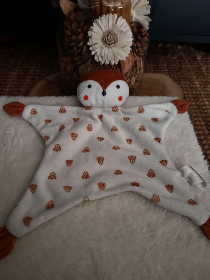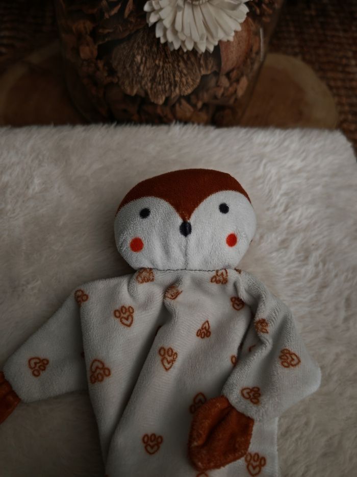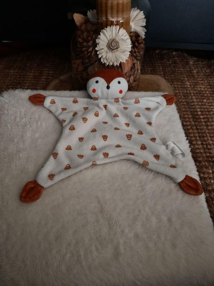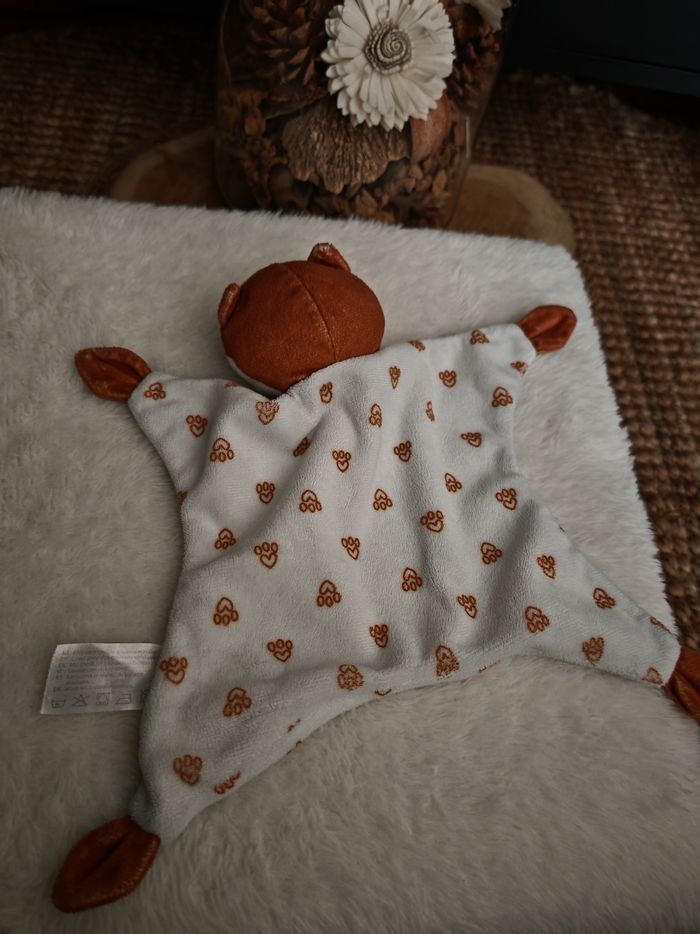 Doudou plat marron et blanc avec grelot - photo numéro 5