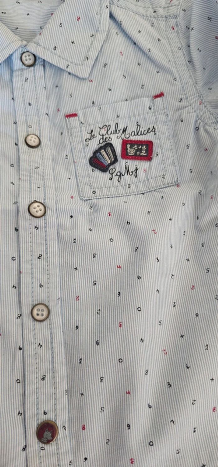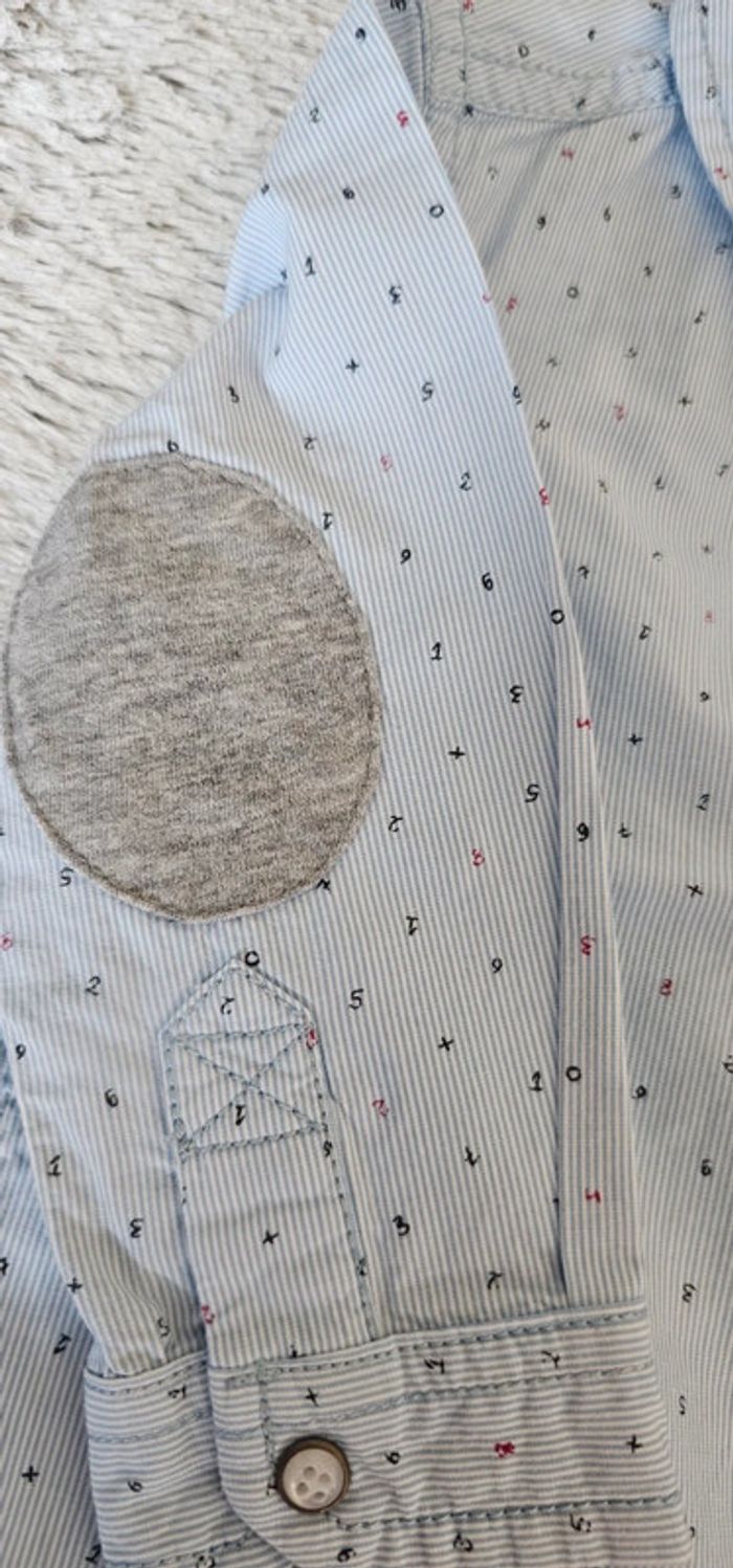 Très jolie chemise bleue ciel coudières grises en excellent état.