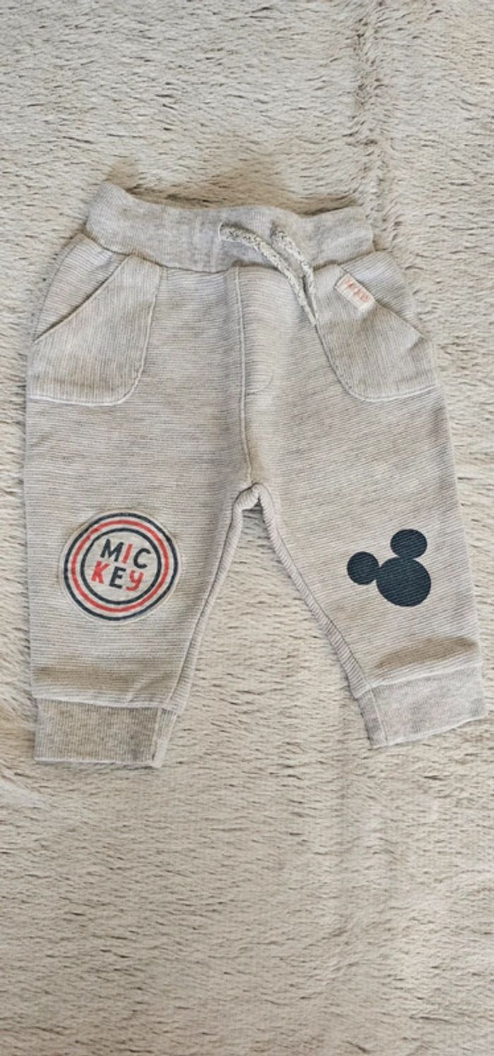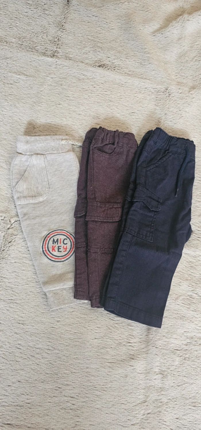 Lot de 3 pantalons 1 gris façon jogging Mickey Disney 1 pantalon battre marron Orchestra et 1 bleu marine U tout petit en parfait état.