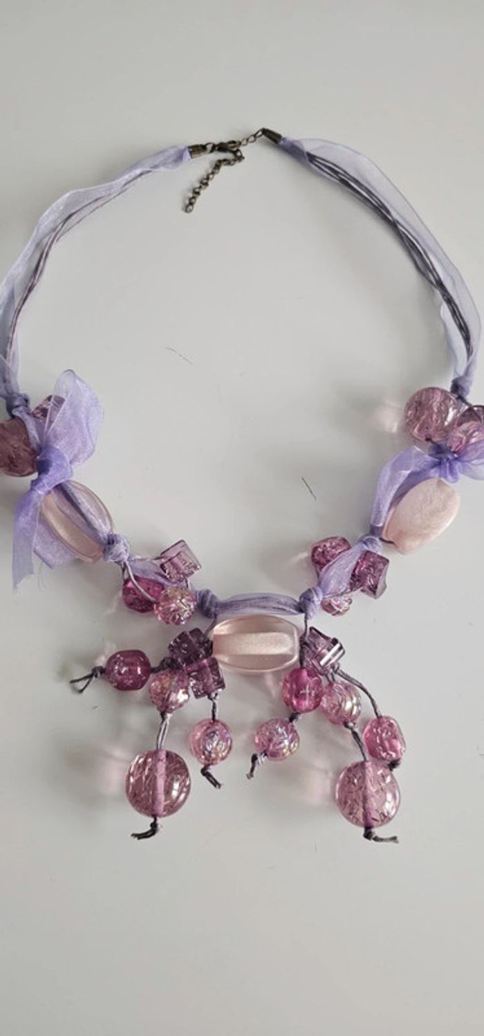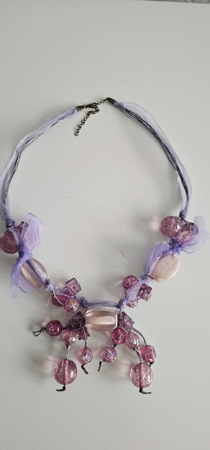 Collier fantaisie parme avec perles er ruban