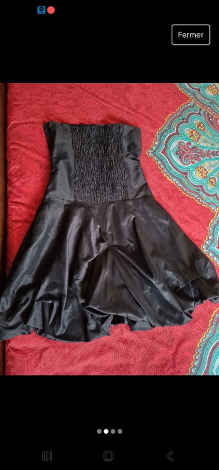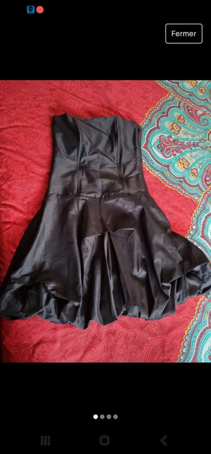 Jolie petite robe bustier de fête noire satinée. En parfait état.