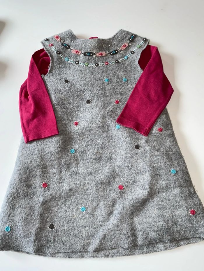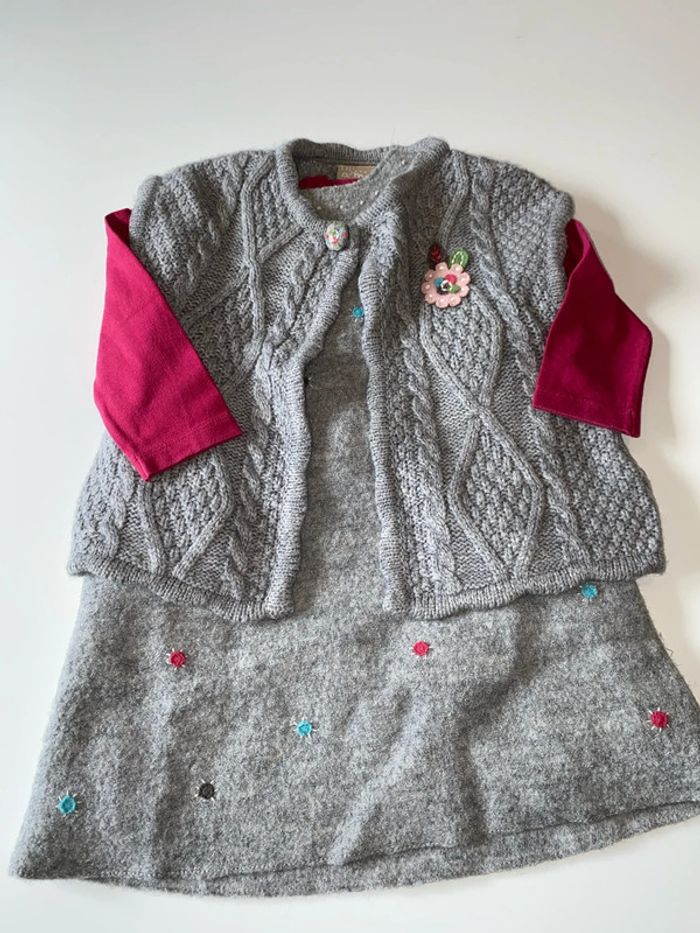 Ensemble DPAM T. 18 mois 1 t-shirt manches longues 1 robe 1 gilet
