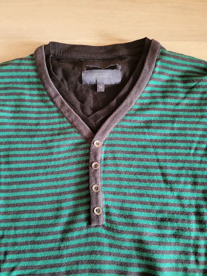 Avec boutons factices et faux col t-shirt. Taille M. Étiquettes coupées. Épaisseur fine. #nd8015homme #pullcolv