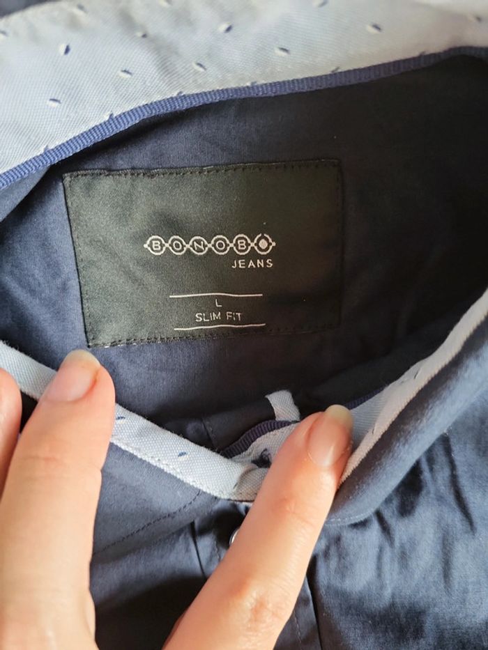 Bleu marine excellent état. Étiquette coupée. Taille L coupe ajustée slim fit. #nd8015homme