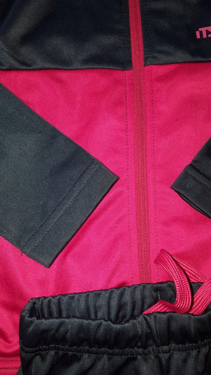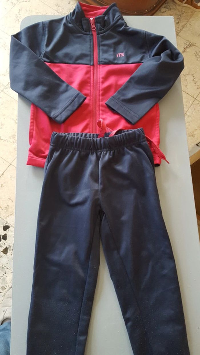 Veste et pantalon. Marine et fuschia, taille 5 ans. Bouloches aux genoux, fesses et haut du dos. #jogginggarçon5ans #nd8015garçon4ans #nd8015garcon5ans #jogging
